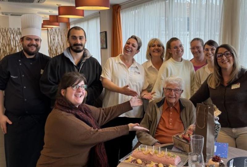 Aujourd’hui, nous avons partagé un moment convivial en dégustant un morceau de gâteau, spécialement préparé en l’honneur de notre résident exceptionnel qui célèbre ses 105 ans!! Cette occasion unique nous a permis de marquer cet anniversaire mémorable et de lui témoigner toute notre admiration et notre affection