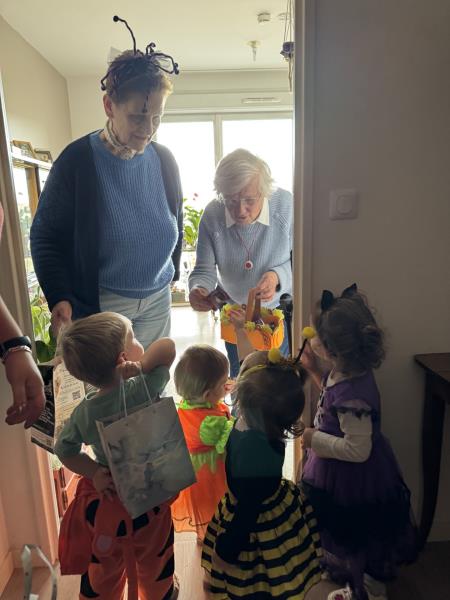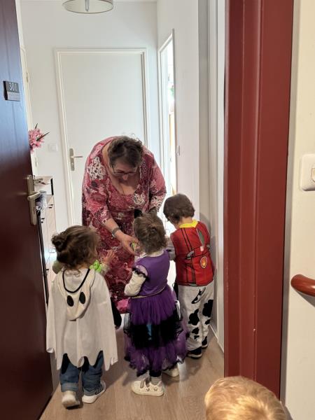 Les enfants de la crèche Les Marmottines et de La Ronde des P’tits Loups sont venus toquer de porte en porte pour réclamer des bonbons auprès de nos résidents 🍬🍭