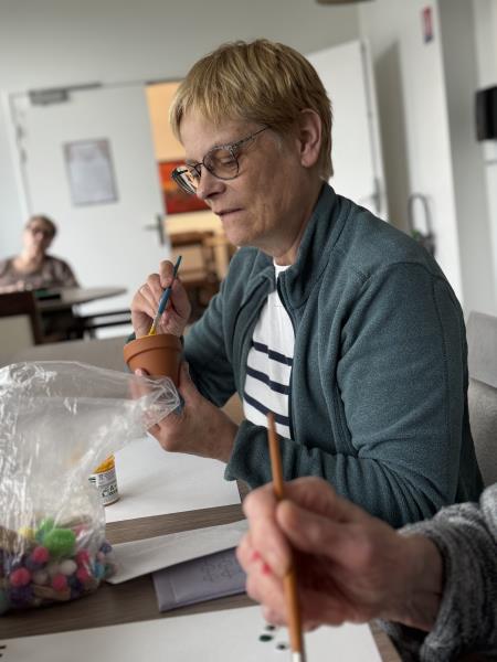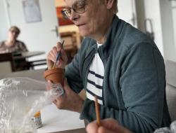 Entre rires, pinceaux et paillettes, chacun décore son pot avec soin et bonne humeur