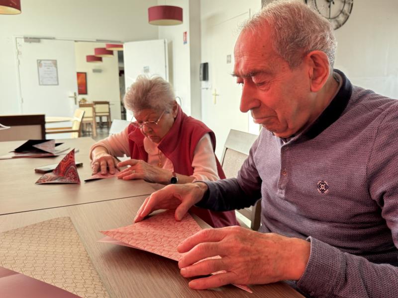 Ce matin, nos résidents ont laissé parler leur créativité lors d’un atelier origami spécial fêtes !
