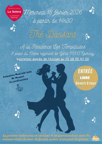 ☕💃 Thé dansant le 18 février à 14h30 au sein de la Résidence Les Templitudes Epernay