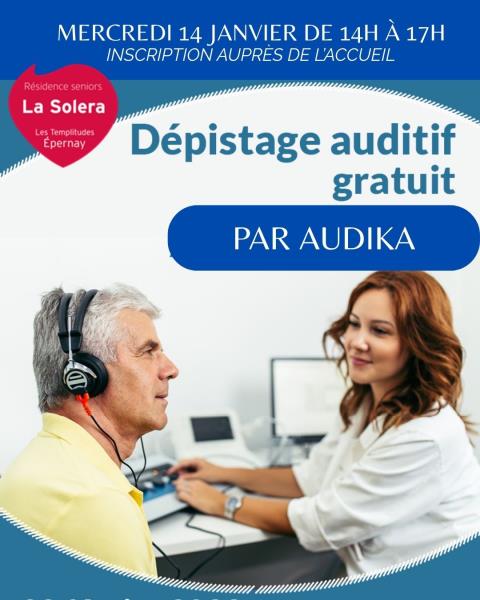 Dans le cadre de la prévention et du suivi du bien-être de nos résidents, la société Audika interviendra au sein de l’établissement le 14 janvier afin de proposer un dépistage auditif gratuit.