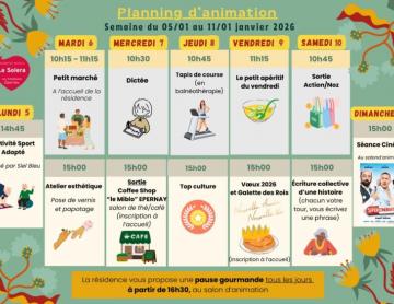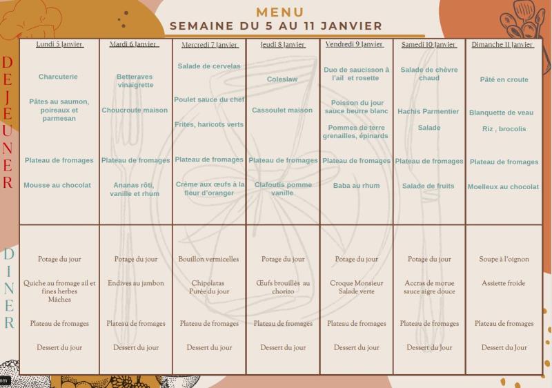 Les Templitudes "La Solera" > Actualités > Menu du 05 au 11/01 Menu du 05 au 11/01 Publiée le 03/01/2026 Menu du 05 au 11/01