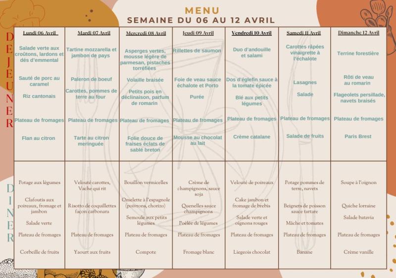 Les Templitudes "La Solera" > Actualités > Menu du 06 au 12/04 Menu du 06 au 12/04 Publiée le 04/04/2026 Menu du 06 au 12/04