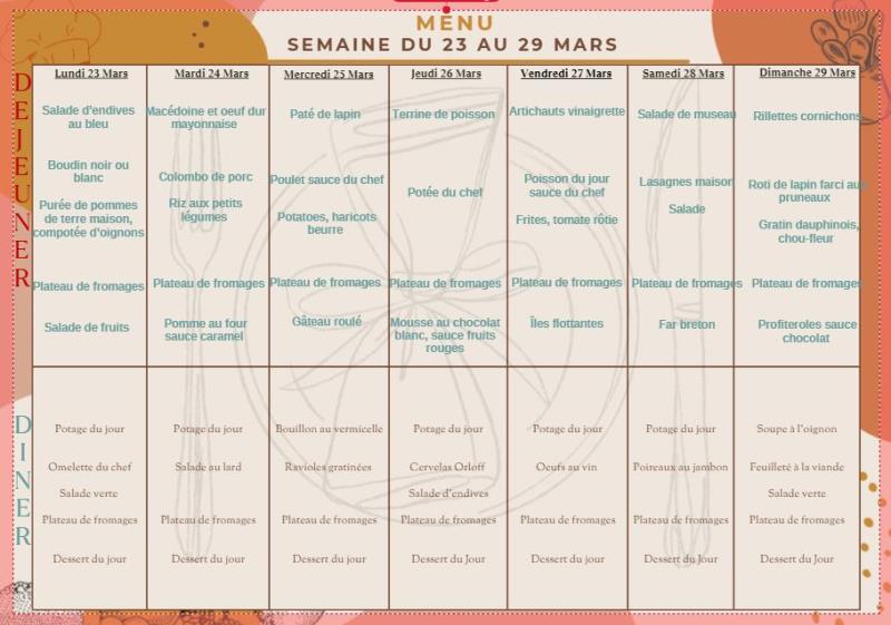 Les Templitudes "La Solera" > Actualités > Menu du 23 au 29/03 Menu du 23 au 29/03 Publiée le 21/03/2026 Menu du 23 au 29/03
