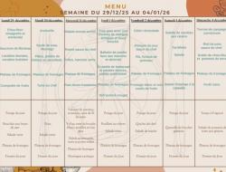 Les Templitudes "La Solera" > Actualités > Menu du 29/12 au 06/01 Menu du 29/12 au 06/01 Publiée le 26/12/2025 Menu du 29/12 au 06/01