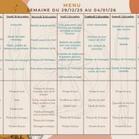 Publiée le 26/12/2025Menu du 29/12 au 06/01 Lire la suite