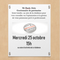 Publiée le 08/10/2023Le mercredi 25 octobre Mr Daele interviendra au sein de notre Résidence Les Templitudes Epernay pour conseiller les résidents et les fami [...] Lire la suite