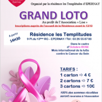 Publiée le 14/09/2023Comme chaque année notre résidence se mobilise contre le cancer du sein. Le mercredi 18 octobre aura lieu notre grand loto dont l’intégralité des fonds sera reversé à l'association "Lise" Nous vendrons également des rubans roses confectionnés par nos séniors pendant tout le [...] Lire la suite