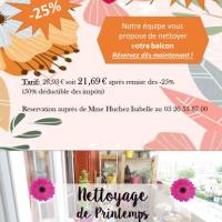 Publiée le 22/05/2023Chaque mois nous proposons à nos résidents des offres promotionnelles sur certains de nos services. Pour le mois de juin nous proposons une offre sur le nettoyage des balcons. Avec ce joli temps qui arrive n'hésitez pas à donner un petit coup de fraicheur à votre extérieur. &nbs [...] Lire la suite