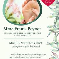 Publiée le 15/11/2025✨ Envie d’un moment de détente ? Venez découvrir la réflexologie avec Emme Apeynet, le mardi 25 novembre à 14h30 à la résidence ! 🌿 Un temps pour soi, pour se relaxer et en apprendre davantage sur cette pratique bien-être. [...] Lire la suite