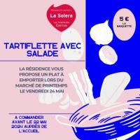 Publiée le 17/05/2024A venir lors du marché de printemps du vendredi 24 mai ,l'équipe de cuisine propose une tartiflette à emporter. Commande à effectuer avant mercredi auprès de l'accueil ! Lire la suite