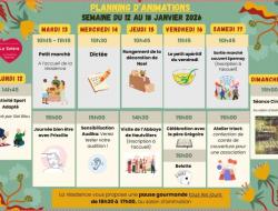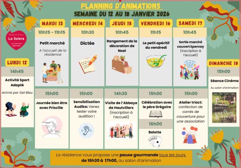 Les Templitudes "La Solera" > Actualités > Planning des animations du 12 au 18/01 Planning des animations du 12 au 18/01 Publiée le 10/01/2026 Planning des animations du 12 au 18/01