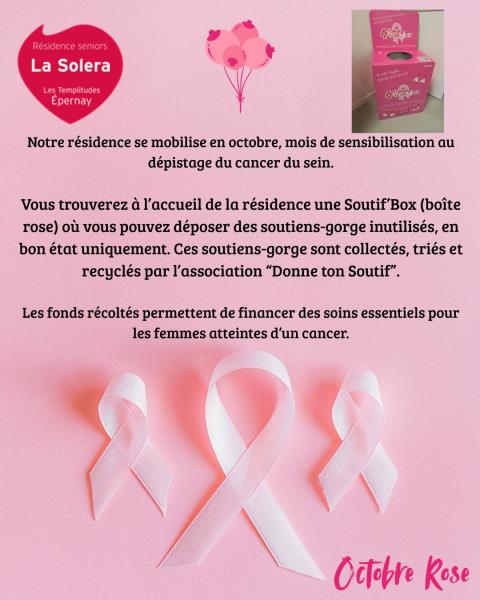 Notre résidence se mobilise en octobre, mois de sensibilisation au dépistage du cancer du sein.